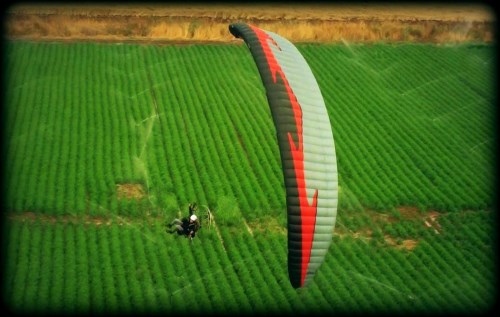 特殊屬性:飛行傘需要指出的是,在拉下剎車進行轉彎時,傘衣的傾斜角會隨著剎車量的增加而加大,而由人體的慣性引起的離心力也會隨剎車量和操縱速度的快慢而變化,拉動剎車越快,慣性力也越大。所以剎車操縱一定要適度和柔和,否則會導致嚴重后果。如果飛行員不斷增加剎車量,則飛行傘的盤旋轉彎半徑會隨之越來越小,傾角變得陡峭并進入緊密的螺旋形下降,超量的剎車操縱甚至會導致進入危險的螺旋俯沖。產生這種情況的原因,是由于離心力與傘系統的總重量W相結合產生一個新的表現重力Wa。這個新的載荷大于w,也大于氣動力R,由于升力不足以平衡wa的分力,所以會導致高度損失。這種情況如發生在低空則往往會導致墜地和造成傷亡的嚴重后果,這是需要待別引起重視的。一般情況下操縱飛行傘轉彎時,飛行傘與水平面的傾角不應大于30度。